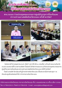 สรจ.ระนอง ร่วมประชุมคณะกรรมการศูนย์อำนวยการป้องกันและ ปราบปรามยาเสพติดจังหวัดระนอง ครั้งที่ 4/2567