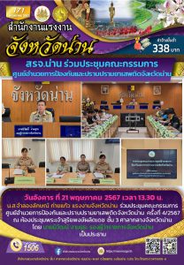 แรงงานจังหวัดน่าน ร่วมประชุมคณะกรรมการศูนย์อำนวยการป้องกันและปราบปรามยาเสพติดจังหวัดน่าน ครั้งที่ 4/2567