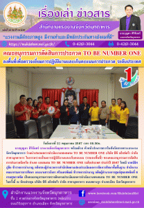 คณะอนุกรรมการตัดสินการประกวด TO BE NUMBER ONE ลงพื้นที่เพื่อตรวจเยี่ยมการปฏิบัติงานและเก็บคะแนนการประกวด ระดับประเทศ