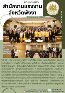 สำนักงานแรงงานจังหวัดพังงา เข้าร่วมกิจกรรมฝึกอบรมครู ก (ครูต้นแบบระดับจังหวัด) ตามโครงการยกระดับคุณภาพชีวิตแรงงานนอกระบบโดยเครือข่ายชุมชนผ่านการขึ้นทะเบียนแรงงานนอกระบบ (แรงงานอิสระ)