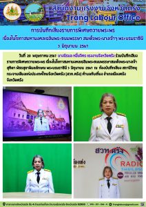 แรงงานจังหวัดตรัง ร่วมการบันทึกเสียงรายการพิเศษถวายพระพร เนื่องในโอกาสมหามงคลเฉลิมพระชนมพรรษา สมเด็จพระนางเจ้าฯ พระบรมราชินี 3 มิถุนายน 2567