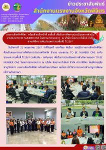 แรงงานจังหวัดพิจิตร พร้อมด้วยเจ้าหน้าที่ ลงพื้นที่ เพื่อรับการติดตามประเมินผลการดำเนินงานชมรมTO BE NUMBER ONE ในสถานประกอบการ ณ บริษัท นันยางการ์เม้นท์ จำกัด สาขาพิจิตร ระดับประเทศ (รอบพื้นที่) ปี 2567