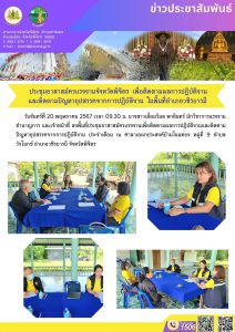 ผู้ตรวจราชการกระทรวงแรงงาน ร่วมตรวจเยี่ยมการปฏิบัติงานและเก็บคะแนนการประกวดกิจกรรมในโครงการ TO BE NUMBER ONE ระดับประเทศ ประจำปี 2567