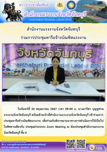 นางมาริสา บุญชูช่วย แรงงานจังหวัดจันทบุรี เข้าร่วมการประชุมหารือจ้างบัณฑิตแรงงาน