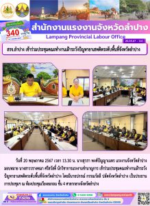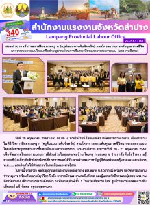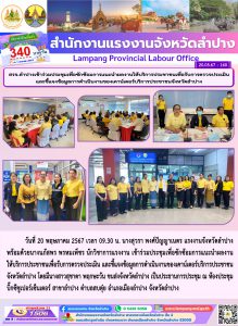 สรจ.ลำปาง การฝึกอบรมครู ก (ครูต้นแบบระดับจังหวัด) ตามโครงการยกระดับคุณภาพชีวิตแรงงานนอกระบบโดยเครือข่ายชุมชนผ่านการขึ้นทะเบียนแรงงานนอกระบบ (แรงงานอิสระ) ระหว่างวันที่ 20 – 21 พฤษภาคม 2567