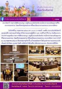 สรจ.ปัตตานี ร่วมการจัดฝึกอบรม ครู ก (ครูต้นแบบระดับจังหวัด) ตามโครงการยกระดับคุณภาพชีวิตแรงงานนอกระบบ โดยเครือข่ายชุมชนผ่านการขึ้นทะเบียนแรงงานนอกระบบ (แรงงานอิสระ)