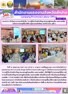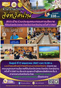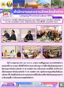 แรงงานจังหวัดน่าน ร่วมต้อนรับคณะกรรมการติดตามผลดำเนินงานจังหวัด อำเภอ และชมรม TO BE NUMBER ONE ระดับประเทศ (รอบพื้นที่) ประจำปี 2567