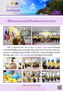 แรงงานจังหวัดสตูล ร่วมเป็นเกียรติในพิธีรับมอบหมวกและผ้าพันคอจิตอาสาพระราชทาน