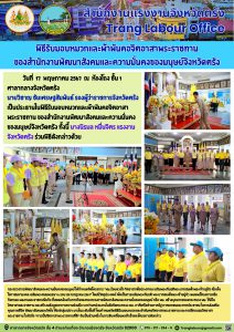 แรงงานจังหวัดตรัง ร่วมพิธีรับมอบหมวกและผ้าพันคอจิตอาสาพระราชทาน