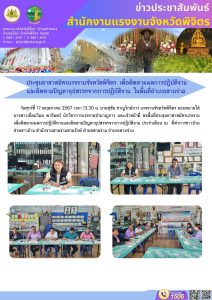 ประชุมอาสาสมัครแรงงานจังหวัดพิจิตร เพื่อติดตามผลการปฏิบัติงาน และติดตามปัญหาอุปสรรคจากการปฏิบัติงาน ในพื้นที่อำเภอสามง่าม