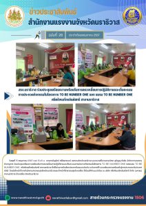 สรจ.นราธิวาส ร่วมประชุมเตรียมความพร้อมรับการตรวจเยี่ยมการปฏิบัติงานและเก็บคะแนนการประกวดกิจกรรมในโครงการ TO BE NUMBER ONE ของ ชมรม TO BE NUMBER ONE ศรีตรังแอโกรอินดัสทรี สาขานราธิวาส