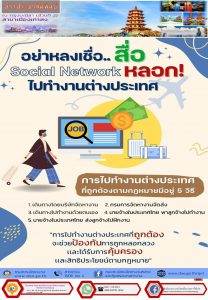 สนร. เกาสง เน้นย้ำ อย่าหลงเชื่อสื่อสังคมออนไลน์หลอกมาทำงานต่างประเทศ