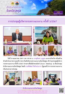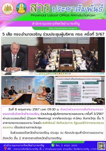 5 เสือ กรง.จ.สตูล เข้าร่วมประชุมผู้บริหารกระทรวงแรงงาน ครั้งที่ 3/2567 ผ่านทางสื่ออิเล็กทรอนิกส์ (Zoom Meeting)