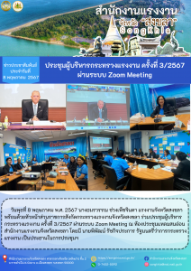 สรจ.สงขลา ประชุมผู้บริหารกระทรวงแรงงาน ครั้งที่ 3/2567 ผ่านระบบ Zoom Meeting