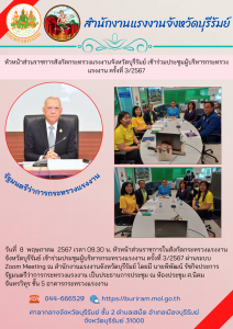 หัวหน้าส่วนราชการสังกัดกระทรวงแรงงานจังหวัดบุรีรัมย์ เข้าร่วมประชุมผู้บริหารกระทรวงแรงงาน ครั้งที่ 3/2567