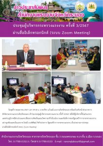 สรจ.ระนอง ร่วมประชุมผู้บริหารกระทรวงแรงงาน ครั้งที่ 3/2567 ผ่านสื่ออิเล็กทรอกนิกส์ (ระบบ Zoom Meeting)