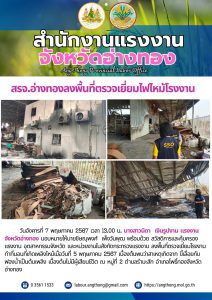สรจ.อ่างทองลงพื้นที่ตรวจเยี่ยมไฟไหม้โรงงาน