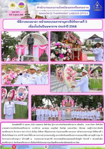 วันที่ 23 ตุลาคม 2568 นายสมชาย ลีหล้าน้อย ผู้ว่าราชการจังหวัดนครศรีธรรมราช พร้อมด้วยนาวงสาววันษา ลีหล้าน้อย นายกเหล่ากาชาดจังหวัดนครศรีธรรมราช นางวจิราพร อมาตยกุล นายสุวัฒน์ จันทร์สุข และนายวิทยา เขียวรอด รองผู้ว่าราชการจังหวัดนครศรีธรรมราช ข้าราชการ ทหาร ตำรวจ นักเรียน นักศึกษา พี่น้องประชาชน ร่วมประกอบพิธีวางพวงมาลา หน้าพระบรมราชานุสาวรีย์รัชกาลที่ 5 เนื่องในวันปิยมหาราช ประจำปี 2568 ทั้งนี้นางสาวนราภรณ์ สุวรรณประเสริฐ แรงงานจังหวัดนครศรีธรรมราช มอบหมายให้นางสาวมยุรีย์ สาชุม นักวิชาการแรงงานชำนาญการ เข้าร่วมพิธี ณ ลานพระบรมราชานุสาวรีย์ พระบาทสมเด็จพระจุลจอมเกล้าเจ้าอยู่หัว รัชกาลที่ 5 สนามหน้าเมืองนครศรีธรรมราช จังหวัดนครศรีธรรมราช เพื่อน้อมรำลึกถึงพระมหากรุณาธิคุณที่พระองค์ทรงมีต่อพสกนิกรชาวไทย