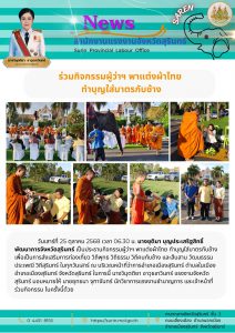 แรงงานจังหวัดสุรินทร์ ร่วมกิจกรรมผู้ว่าฯ พาแต่งผ้าไทย ทำบุญใส่บาตรกับช้าง