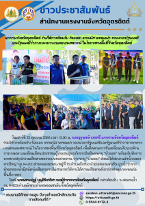 แรงงานจังหวัดอุตรดิตถ์ ร่วมให้การต้อนรับ ร้อยเอก ธรรมนัส พรหมเผ่า รองนายกรัฐมนตรีและรัฐมนตรีว่าการกระทรวงเกษตรและสหกรณ์ ในโอกาสลงพื้นที่จังหวัดอุตรดิตถ์
