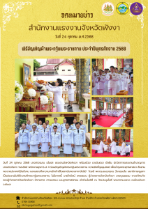 สรจ.พังงา ร่วมพิธีเจริญพระพุทธมนต์สมโภชผ้าพระกฐินพระราชทาน ประจำปี 2568