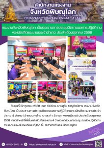 เเรงงานจังหวัดพิษณุโลก เป็นประธานการประชุมติดตามผลการปฏิบัติงานของบัณฑิตเเรงงานประจำอำเภอ ประจำเดือนตุลาคม 2568