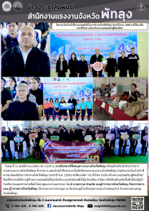 สำนักงานแรงงานจังหวัดพัทลุง ร่วมกิจกรรมวันเจ้าหน้าที่ความปลอดภัยในการทำงานจังหวัดพัทลุง ประจำปี พ.ศ. 2568 ภายใต้แนวคิด “จป.ทั่วไทย รวมใจ สร้างความปลอดภัย สู่สังคมไทย”
