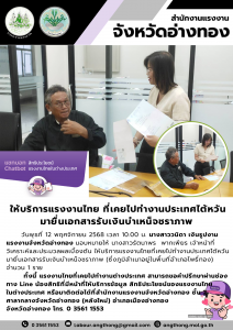 ศูนย์บริการร่วมกระทรวงแรงงานจังหวัดราชบุรี ร่วมกับสำนักงานประกันสังคมจังหวัดราชบุรี สาขาบ้านโป่ง ร่วมให้บริการประชาชนฯ ประจำเดือน พฤศจิกายน พ.ศ.2568