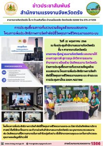 สรจ.ตรัง ร่วมการประชุมชี้แจงการเก็บรวบรวมข้อมูลด้วยแบบสอบถาม โครงการเพิ่มประสิทธิภาพการจัดทำดัชนีชี้วัดคุณภาพชีวิตแรงงานนอกระบบ