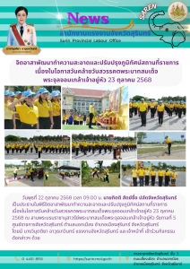 แรงงานจังหวัดสุรินทร์ ร่วมกิจกรรมจิตอาสาพัฒนาทำความสะอาดและปรับปรุงภูมิทัศน์สถานที่ราชการ เนื่องในโอกาสวันคล้ายวันสวรรคตพระบาทสมเด็จ พระจุลจอมเกล้าเจ้าอยู่หัว 23 ตุลาคม 2568