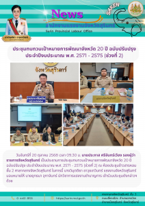แรงงานจังหวัดสุรินทร์ ประชุมทบทวนเป้าหมายการพัฒนาจังหวัด 20 ปี ฉบับปรับปรุง ประจำปีงบประมาณ พ.ศ. 2571 – 2575 (ช่วงที่ 2)