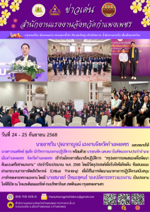 สำนักงานแรงงานจังหวัดกำแพงเพชร ร่วมพิธีเปิดโครงการสัมเชิงปฏิบัติการ “สรุปผลการระดมสมองเพื่อพัฒนาต้นแบบเครือข่ายแรงงาน” ประจำปีงบประมาณ พ.ศ. 2568