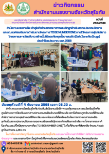 สำนักงานแรงงานจังหวัดสุโขทัยร่วมตรวจหาสารเสพติดลูกจ้างในสถานประกอบกิจการ และรณรงค์ส่งเสริมการดำเนินงานโครงการ TO BE NUMBER ONE ภายใต้โครงการสุโขทัยสีขาว โครงการมหาดไทยสีขาว สร้างพื้นที่ปลอดภัยหยุดยั้งยาเสพติด (Safe Zone No Drugs) ประจำปีงบประมาณ พ.ศ. 2568