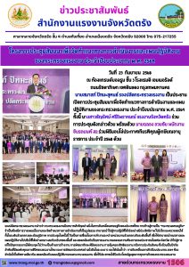 สำนักงานแรงงานจังหวัดกำแพงเพชร ร่วมการลงพื้นที่ตรวจเยี่ยมประชาชนของผู้ว่าราชการจังหวัดกำแพงเพชร (ผู้ว่าฯ สัญจร)