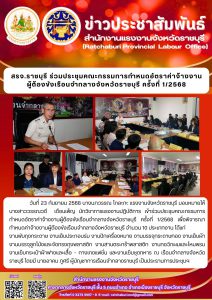 สำนักงานแรงงานจังหวัดบุรีรัมย์ เข้าประชุมคณะกรมการจังหวัดบุรีรัมย์ หัวหน้าส่วนราชการ หัวหน้าหน่วยงานรัฐวิสาหกิจ นายอำเภอ และภาคเอกชน ประจำเดือนกันยายน 2568 (ครั้งที่ 9/2568)