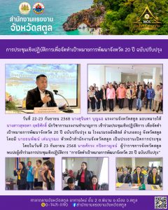 สรจ.สตูล เข้าร่วมประชุมเชิงปฏิบัติการ เพื่อจัดทำเป้าหมายการพัฒนาจังหวัด 20 ปี ฉบับปรับปรุง