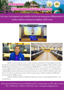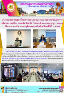 แรงงานเชียงใหม่ ร่วมประชุมคณะกรรมการพัฒนาการบริหารงานยุติธรรมระดับจังหวัด (กพยจ.) และคณะอนุกรรมการ พัฒนาการบริหารงานยุติธรรมระดับจังหวัด ครั้งที่ 2/2568