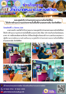 เจ้าหน้าที่ศูนย์บริการร่วมกระทรวงแรงงานจังหวัดพิจิตร ให้บริการประชาชน