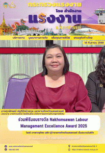 นางศุภลักษณ์ ศรุติรัตน์วรกุล แรงงานจังหวัดนครสวรรค์ มอบหมาย นางสาวนวรัตน์ ไชยรัตนฉัตร นักวิชาการแรงงานชำนาญการพิเศษ ร่วมพิธีมอบรางวัล Nakhonsawan Labour Management Excellence Award 2025 โดยมี นางสาวชุติพร เสชัง ผู้ว่าราชการจังหวัดนครสวรรค์ เป็นประธานในพิธีฯ ณ ห้องประชุมชั้น 5 เทศบาลจังหวัดนครสวรรค์