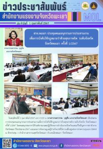 สรจ.พะเยา ร่วมประชุมคณะทำงานพิจารณาประเมินผลคะแนนสถานประกอบกิจการดีเด่นด้านแรงงานสัมพันธ์และสวัสดิการแรงงาน ประจำปี พ.ศ. 2567 ประจำจังหวัดพะเยา