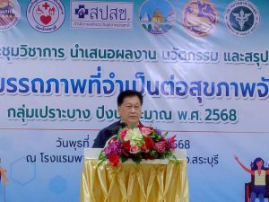แรงงานจังหวัดสระบุรี ร่วมโครงการมหกรรม ประชุมวิชาการ นำเสนอผลงาน นวัตกรรม และสรุปผลการดำเนินงานกองทุนฟื้นฟูสมรรถภาพที่จำเป็นต่อสุขภาพจังหวัดสระบุรี กลุ่มเปราะบาง ปีงบประมาณ พ.ศ. 2568