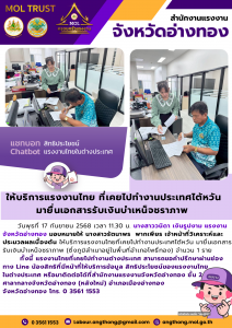 สรจ.อ่างทองให้บริการแรงงานไทย ที่เคยไปทำงานประเทศไต้หวัน มายื่นเอกสารรับเงินบำเหน็จชราภาพ