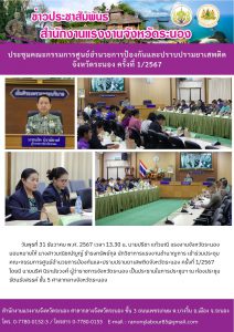 สรจ.ระนอง ร่วมประชุมคณะกรรมการศูนย์อำนวยการป้องกันและปราบปรามยาเสพติดจังหวัดระนอง ครั้งที่ 1/2567