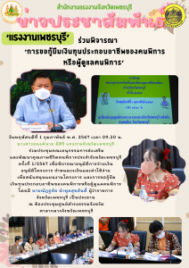 สรจ.เพชรบุรี ร่วมพิจารณา การขอกู้ยืมเงินทุนประกอบอาชีพของคนพิการหรือผู้ดูแลคนพิการ