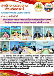 สรจ.กระบี่ ประชุมหัวหน้าส่วนราชการสังกัดกระทรวงแรงงานจังหวัดกระบี่ ครั้งที่ 1/2567
