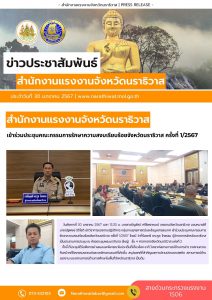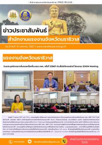 สรจ.นราธิวาส เข้าร่วมประชุมตรวจราชการตามแผนการตรวจราชการของผู้ตรวจราชการกระทรวงแรงงาน ประจำปีงบประมาณ พ.ศ. 2567 รอบที่ 1 (Project Review) ผ่านระบบ Zoom Meeting