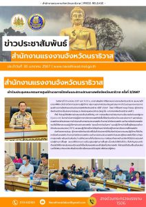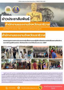สรจ.นราธิวาส ออกตรวจบูรณาการสถานประกอบการกลุ่มเสี่ยงตามแผนปฏิบัติการป้องกันการบังคับใช้แรงงานหรือบริการ และการค้ามนุษย์ด้านแรงงาน จังหวัดนราธิวาส ประจำปีงบประมาณ พ.ศ. 2567