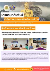 สรจ.นราธิวาส เข้าร่วมประชุมเชิงปฏิบัติการการเล่าเรื่อง (Story Telling) ครั้งที่ 2 เรื่อง “ประสบการณ์การฝึกอบรมทุนต่างประเทศ” ผ่านระบบ Zoom Meeting