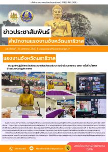 สรจ.นราธิวาส ร่วมประชุมเชิงปฏิบัติการบัณฑิตแรงงานจังหวัดนราธิวาส ประจำเดือนมกราคม 2567 ครั้งที่ 4/2567 ผ่านระบบ Google meet