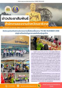 สรจ.นราธิวาส จัดประชุมร่วมกับสถานประกอบการเพื่อขับเคลื่อนงาน TO BE NUMBER ONE มุ่งสู่การป้องกันปัญหายาเสพติดในกลุ่มลูกจ้าง